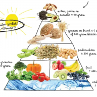 Om te beginnen wilde ik wat houvast en vond een plantaardige piramide, wat moet een volwassenen binnen krijgen naast het supplement B12 (want dat ontbreekt in een plantaardig dieet).